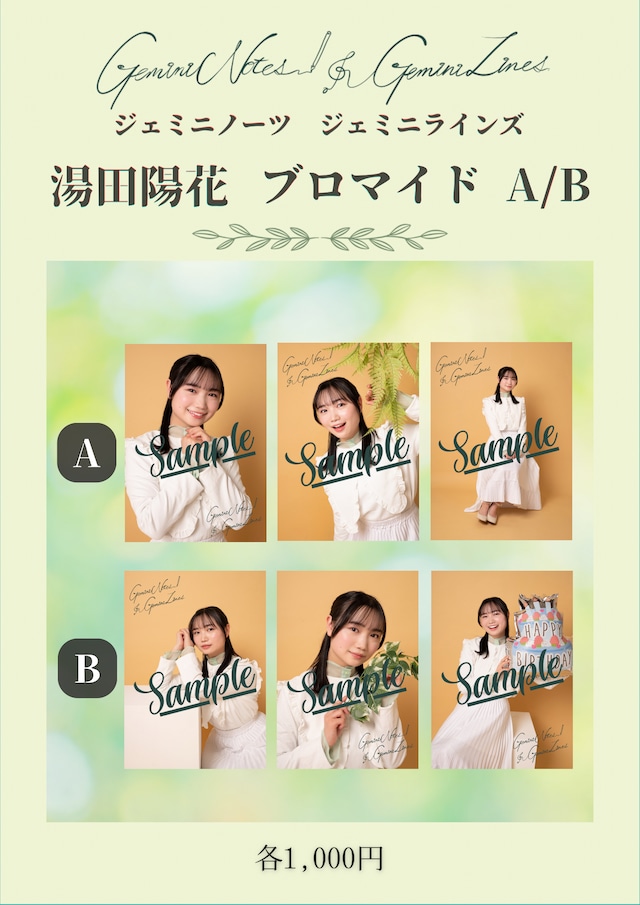 【湯田陽花】ブロマイドA/B(1set3枚入り)「Gemini Notes,Gemini Lines. 」