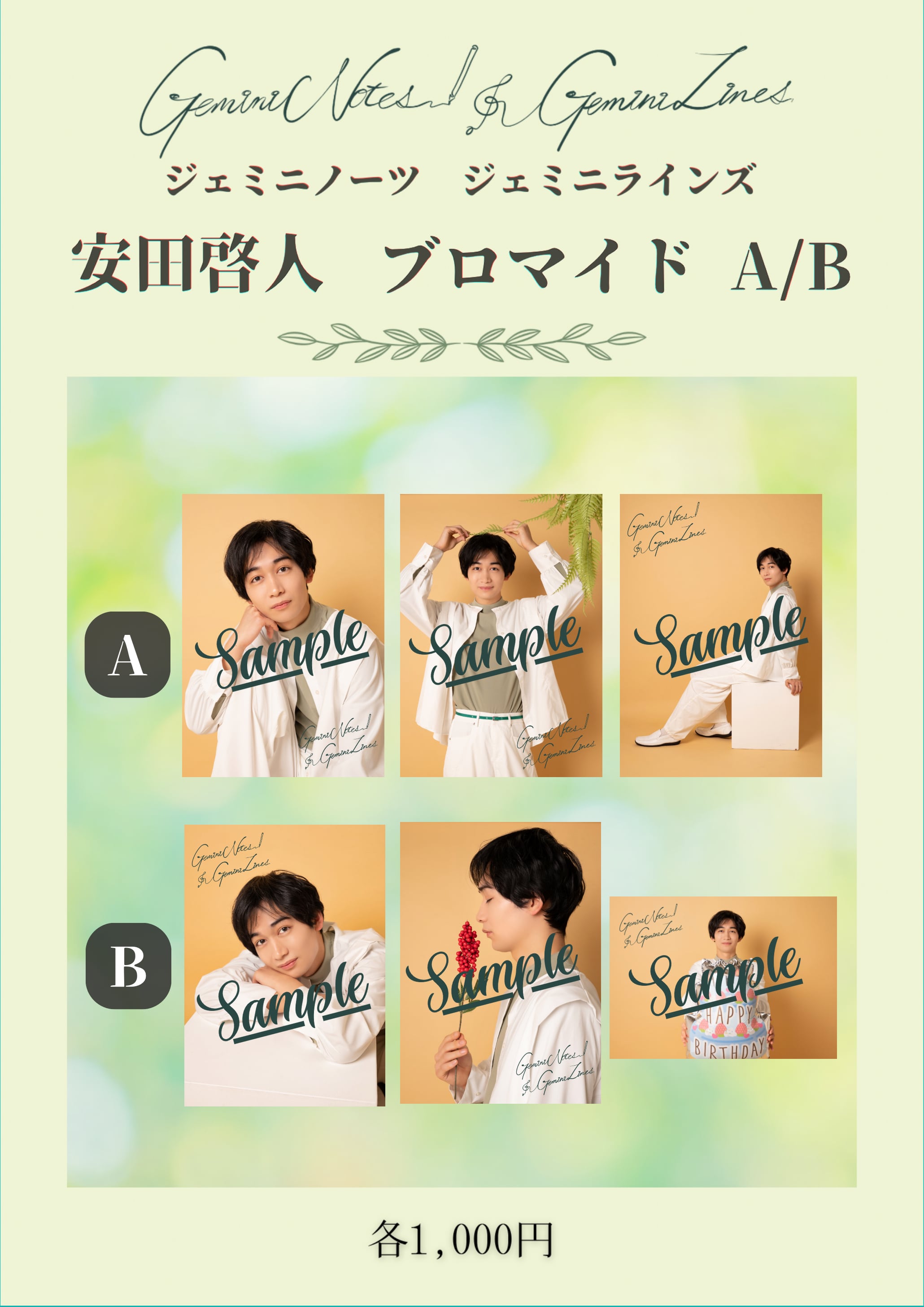 【安田啓人】ブロマイドA/B(1set3枚入り)「Gemini Notes,Gemini Lines. 」